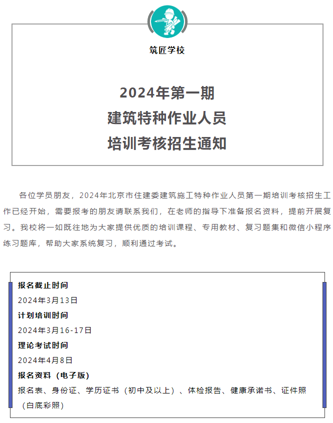 2024年第一期特种作业人员培训招生通知