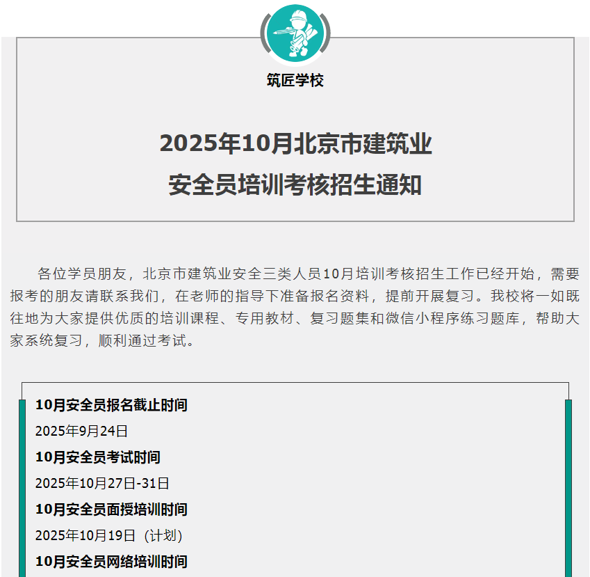 2025年10月安全员培训考核招生通知