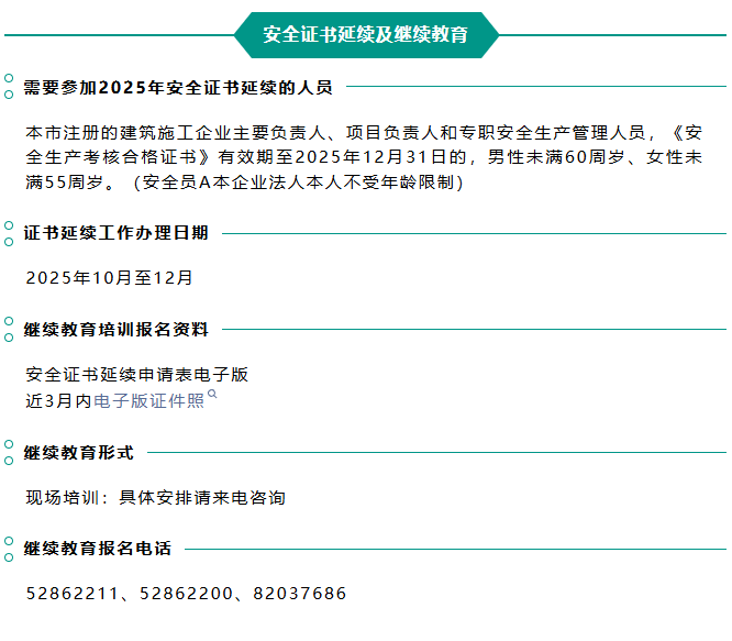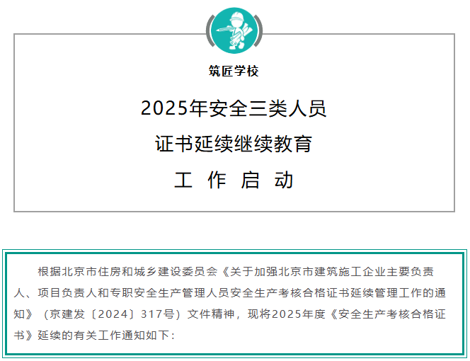 2025年度北京市建筑安全三类人员证书延续继续教育培训通知