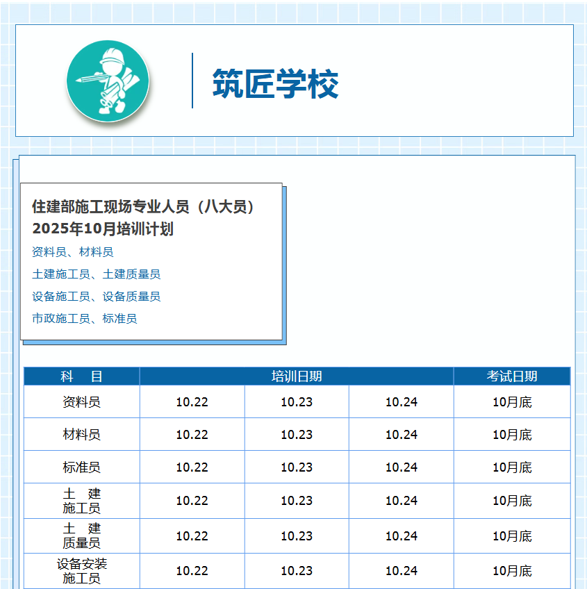 2025年10月施工现场专业人员(八大员)培训考核招生通知