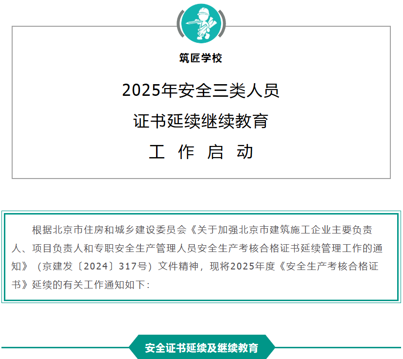 2025年度北京市建筑安全三类人员证书延续继续教育培训通知