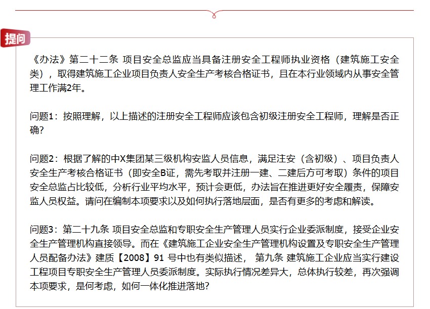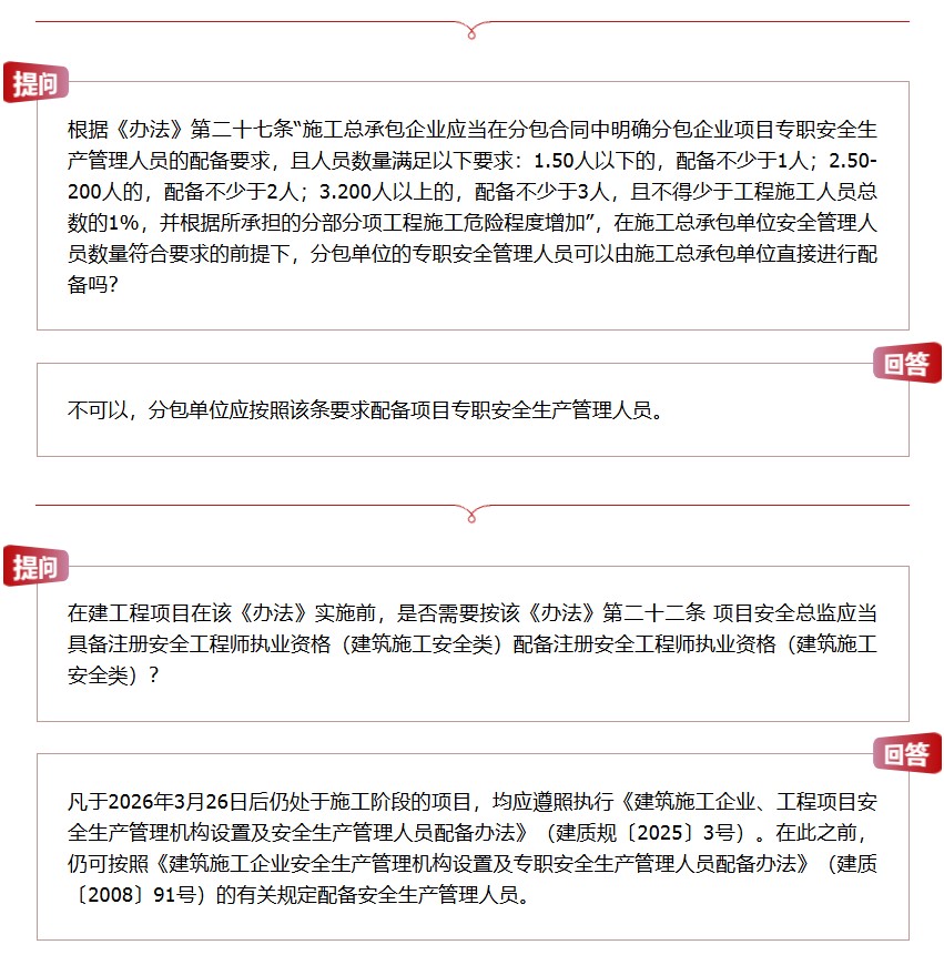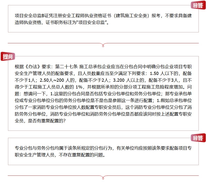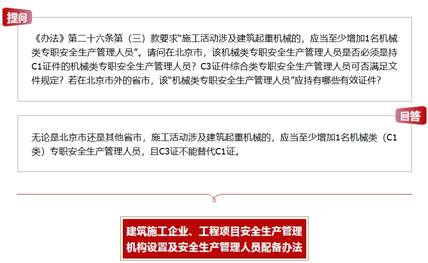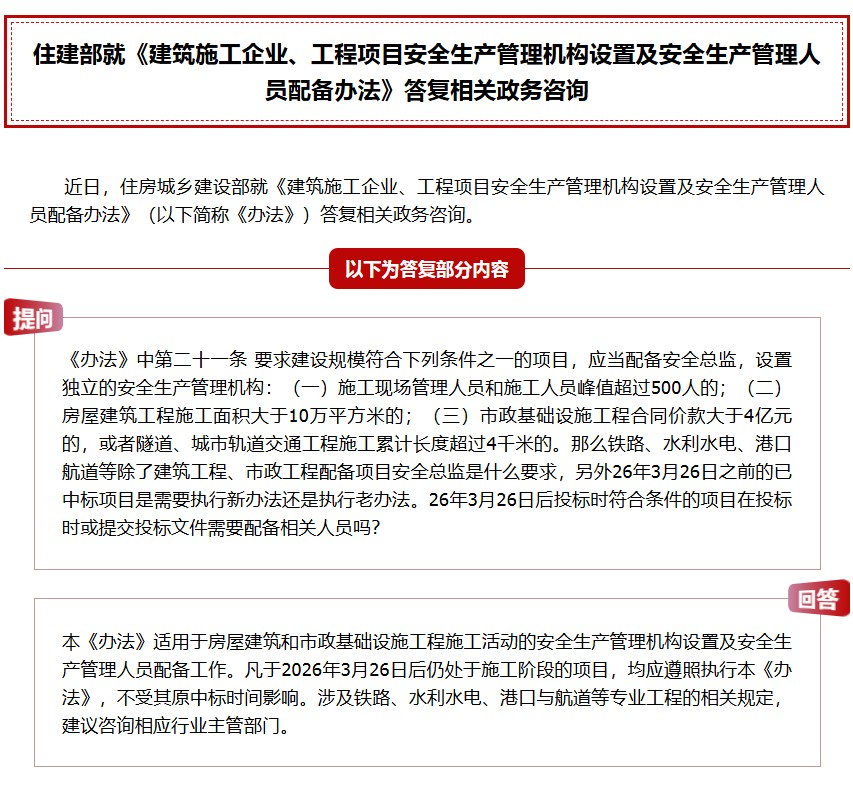 转发“住房城乡建设部就《建筑施工企业、工程项目安全生产管理机构设置及安全生产管理人员配备办法》答复相关政务咨询”