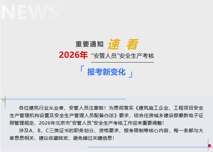 2026年北京市建筑业“安管人员”安全生产考核报考新变化