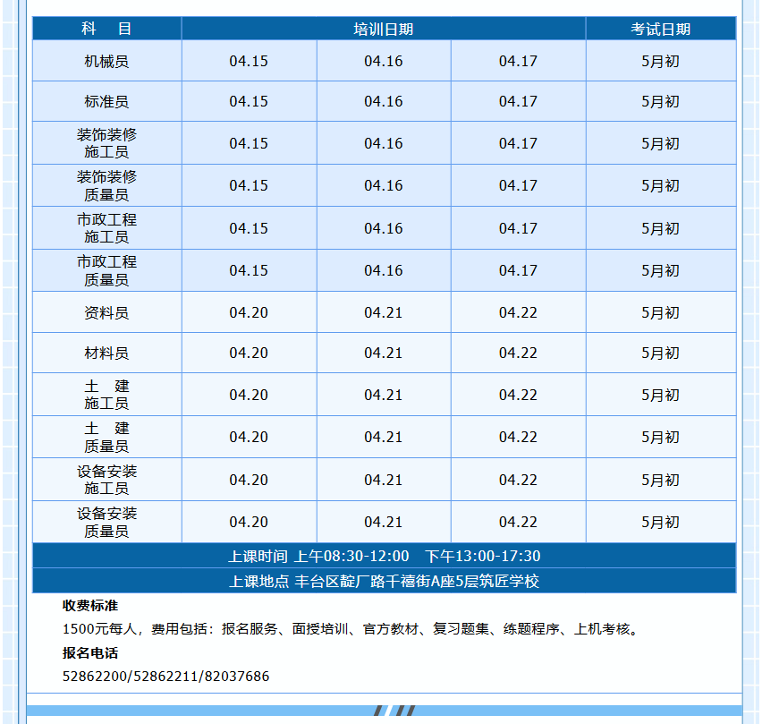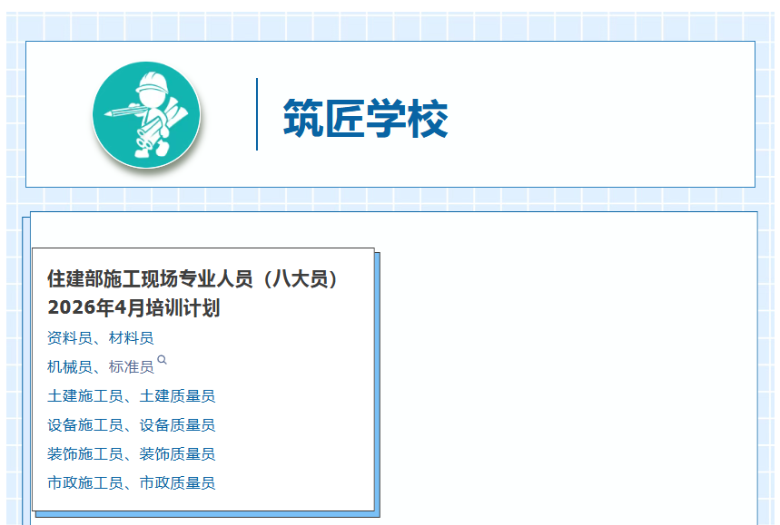 2026年4月施工现场专业人员(八大员)培训考核招生通知